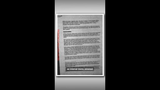 A new memo obtained by the Associated Press says ICE agents can enter people’s homes without...