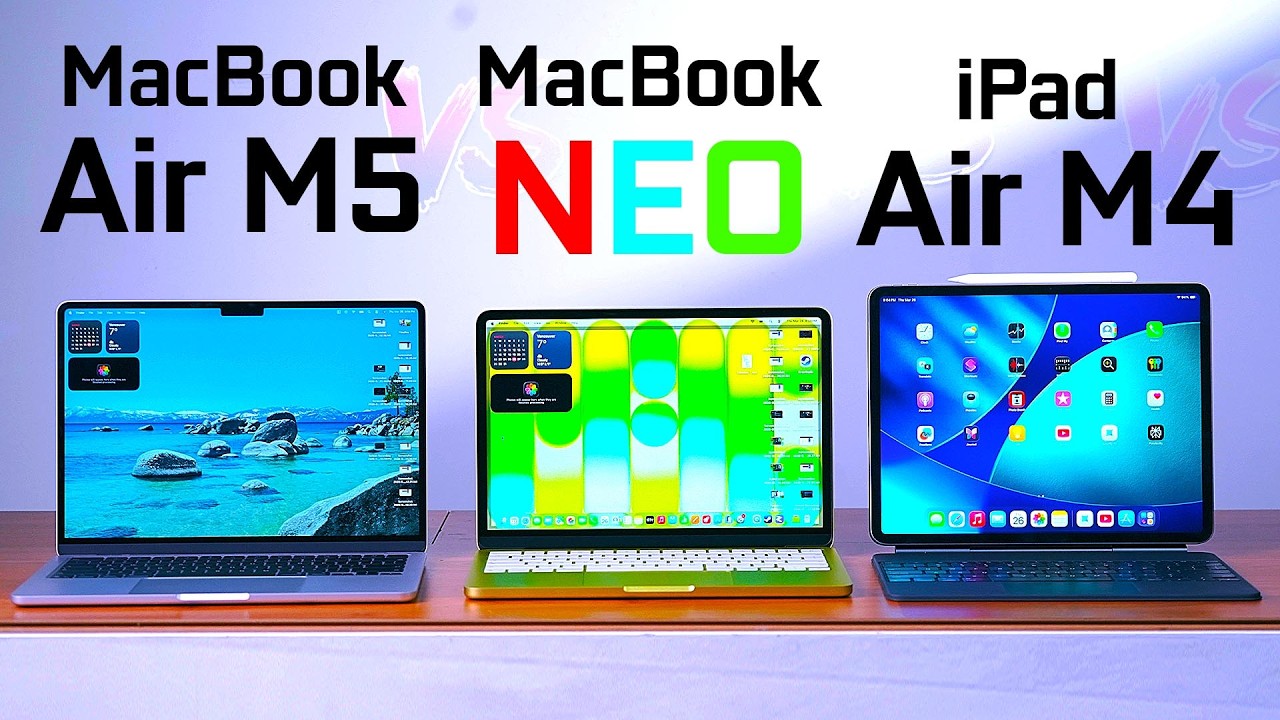 Here is our full Hands-On Comparison of the Apple MacBook Neo vs MacBook Air M5 vs iPad Air M4. More