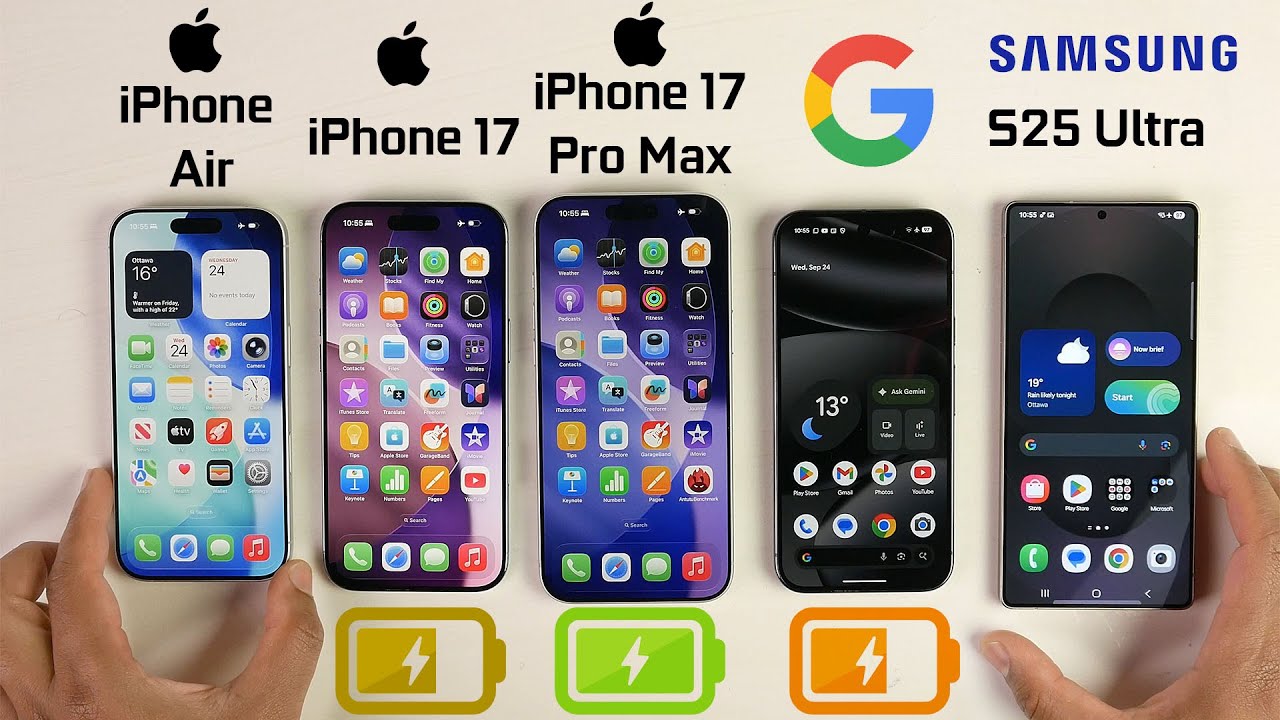 Here is our Battery life test on the iPhone 17 vs iPhone Air vs iPhone 17 Pro Max vs S25