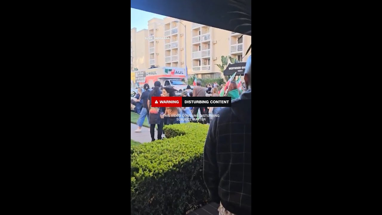 A moving truck drove through a crowd of anti-Iranian government protesters during a large demonstration in Los Angeles’ Westwood neighborhood. A man was struck by the U-Haul and was treated at the scene for injuries that were described by police as not significant.#cnn #news #la #westwood #iran
